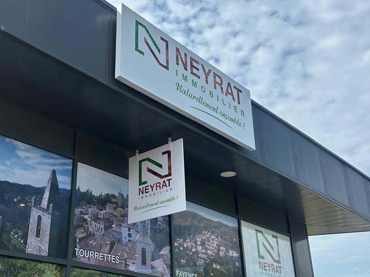 Pour cette nouvelle implantation de Neyrat Immobilier, l’objectif était clair : créer une façade lisible, cohérente et immédiatement identifiable, capable de capter